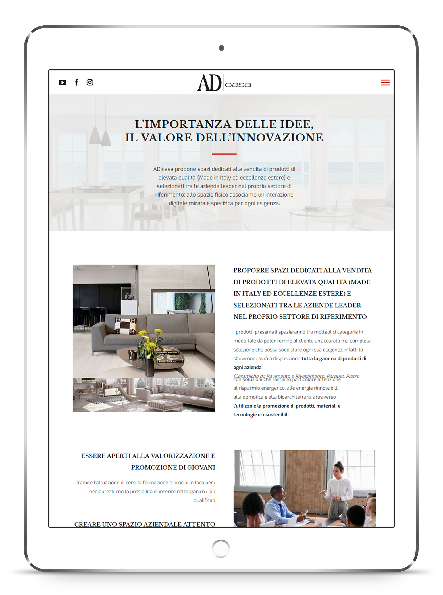 AD|casa propone spazi dedicati alla vendita di prodotti di elevata qualità (Made in Italy ed eccellenze estere) e selezionati tra le aziende leader nel proprio settore di riferimento; allo spazio fisico associa un’interazione digitale mirata e specifica per ogni esigenza.