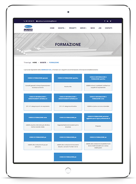 Per questo progetto il team operativo della 3d0 ha realizzato un layout di ampio respiro grafico, attraverso immagini illustrative di grande impatto visivo che si integrano perfettamente con un catalogo case history sapientemente strutturato per fornire all’utente finale informazioni dettagliate ma di semplice reperibilità sui lavori svolti dalla ditta Andreozzi.