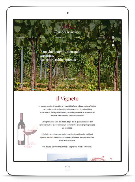 Decantare il vino e le fasi della sua produzione, visivamente ancor prima che il liquido venga versato nel bicchiere per deliziare palati esperti e semplici amatori. Alcuni progetti sono sfide irrinunciabili, talvolta complesse ma affrontate sempre con passione in fase di sviluppo ed orgoglio nel presentare il risultato finale. La 3d0 è ancora una volta fiera di partecipare alla valorizzazione di un’eccellenza della nostra terra: Il Casolare Divino e il suo prodotto d’eccellenza, il Vino Tralice.