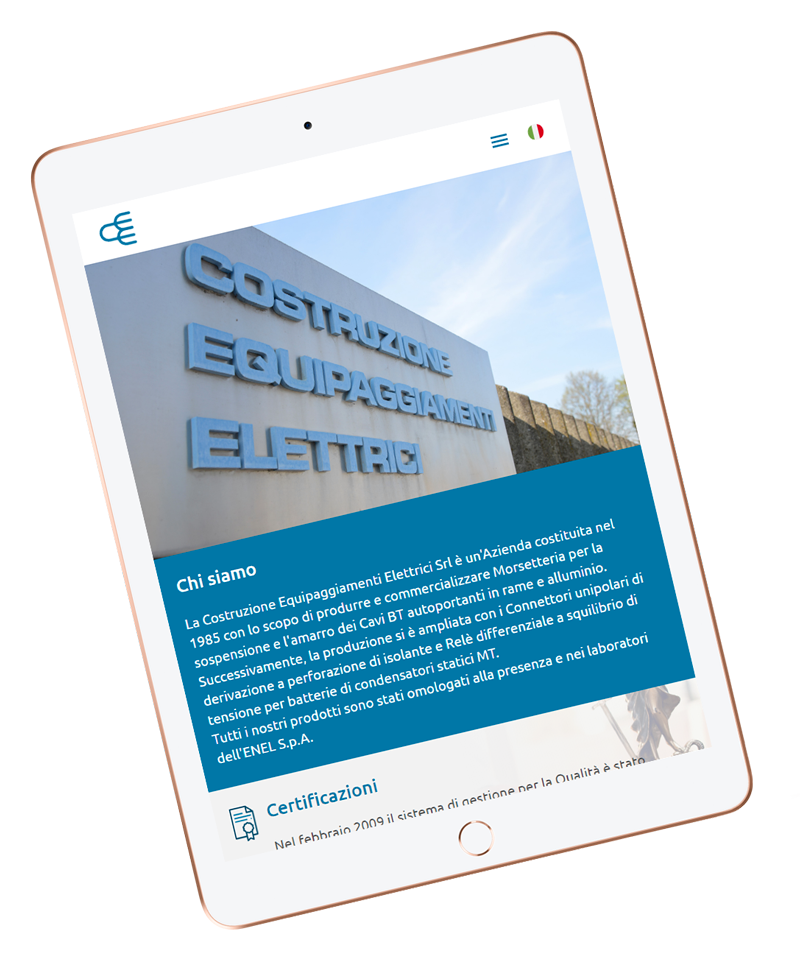 La Costruzione Equipaggiamenti Elettrici Srl è un'Azienda costituita nel 1985 con lo scopo di produrre e commercializzare Morsetteria per la sospensione e l'amarro dei Cavi BT autoportanti in rame e alluminio. Successivamente, la produzione si è ampliata. Tutti i prodotti sono stati omologati alla presenza e nei laboratori dell'ENEL S.p.A.