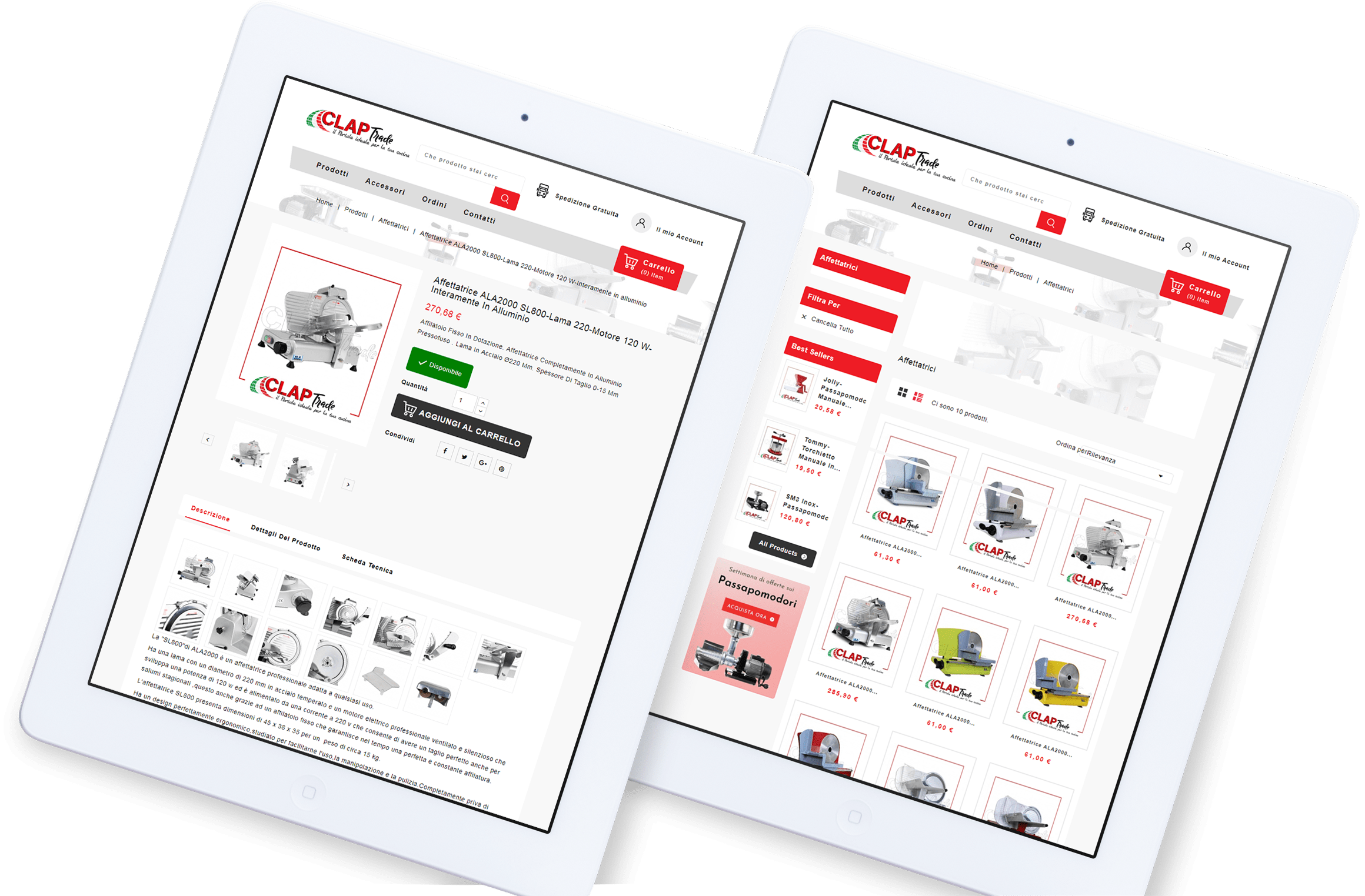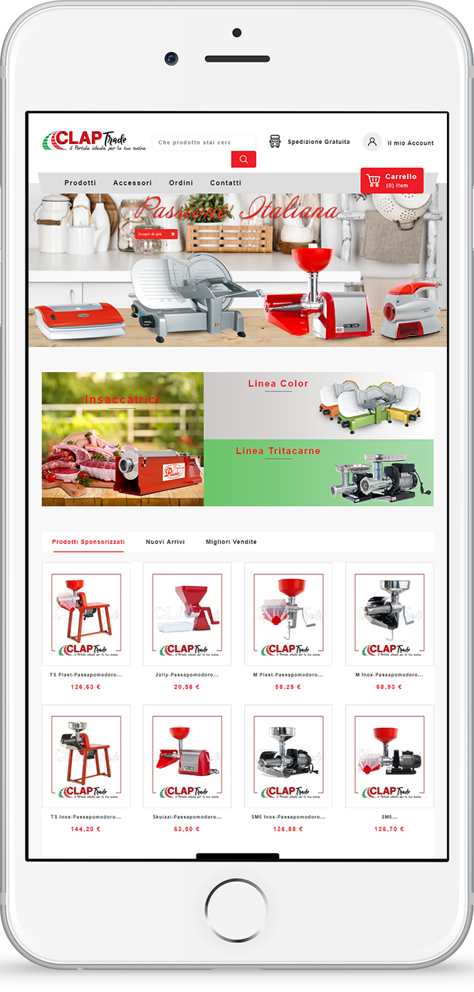 claptrade.it è un portale online specializzato nella vendita di prodotti utilizzati in cucina, sia per il mercato domestico che per quello professionale, ma sempre rigorosamente con realizzazione made in Italy. Queste alcune delle principali categorie commerciali trattate sul sito: passapomodori, sottovuoto, affettatrici, tritacarne, insaccatrici, fornelloni, torchietti.