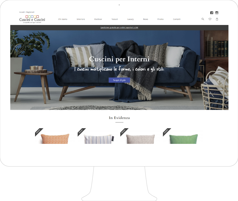 Cuscini e Cuscini è un progetto nato dall'unione delle passioni per l'arredamento, per il tessuto e per il marketing. Alla 3d0 il compito di concepire un visual moderno, pulito ed elegante, adatto a raccontare la forza del made in Italy e l’importanza di affidarsi a specialisti del settore.