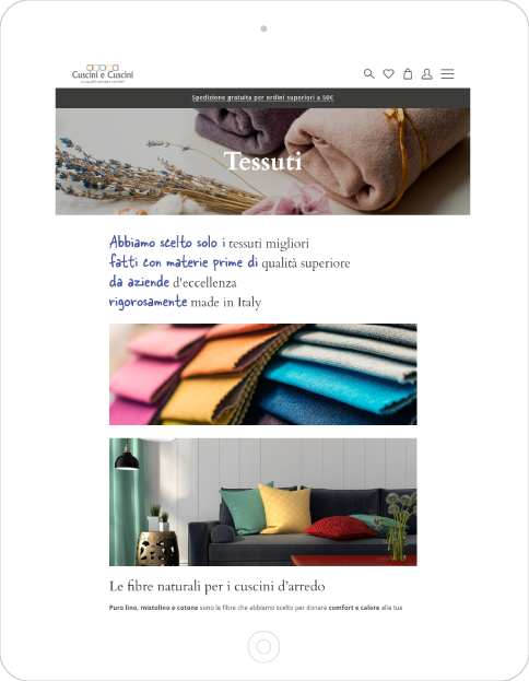In questo progetto confluiscono decenni di esperienza nel settore dei tessuti per l’arredamento, nel settore della confezione tessile e nel marketing, orientati alla creazione di un e-shop in grado di fornire un prodotto superiore e un servizio eccellente, fruibile con pochi “click” dal divano di casa. Tutti i prodotti “Cuscini e Cuscini” sono fatti in Italia.