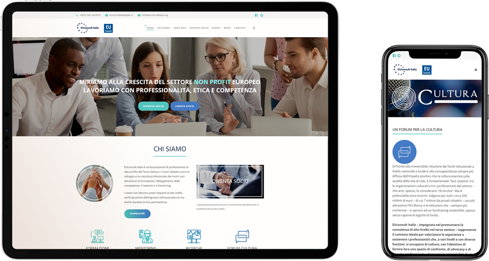 In qualità di partner digital di EUconsult Italia, la 3d0 ha elaborato per il suo portale un progetto di restyling grafico al fine di svecchiarne e quindi potenziarne l’impatto visivo, conservandone la struttura ma proponendo miglioramenti, dove possibile, sia in termini funzionali che di esperienza di navigazione, attraverso una più razionale impaginazione dei contenuti.