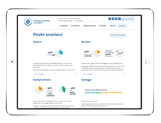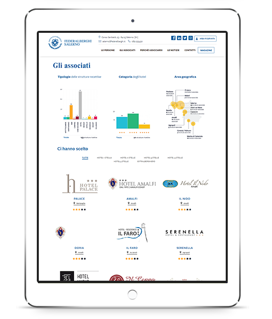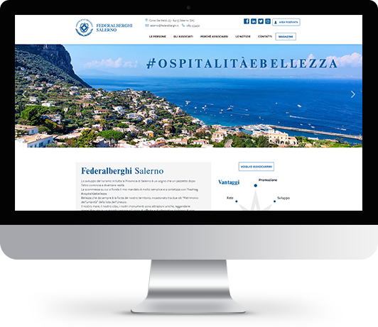 federalberghisalerno.it nasce come progetto ambizioso e stimolante per la valorizzazione dell’impresa ancorata ad un territorio; 3d0 ha l’onore di parteciparne come volano digitale, attraverso la realizzazione di una piattaforma informativa indirizzata principalmente ai rappresentanti del settore “ospitalità” e corredata inoltre dalla rivista “Albergatore Perfetto”, distribuita in versione digitale ed interamente curata nel layout dal nostro team grafico.