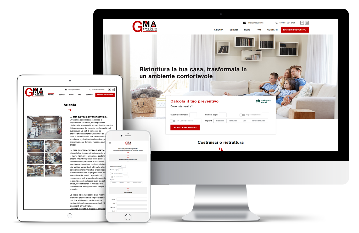 La GMA SYSTEM CONTRACT SERVICE è un’azienda specializzata in edilizia e impiantistica. L’azienda, con esperienza pluriennale, è una realtà imprenditoriale che si è fatta apprezzare dal mercato per la qualità dei suoi servizi. Lo staff è composto da professionisti altamente qualificati e da un ampio team di tecnici interni, che permettono di soddisfare ogni richiesta valutando e garantendo preventivamente il miglior rapporto qualità – prezzo.