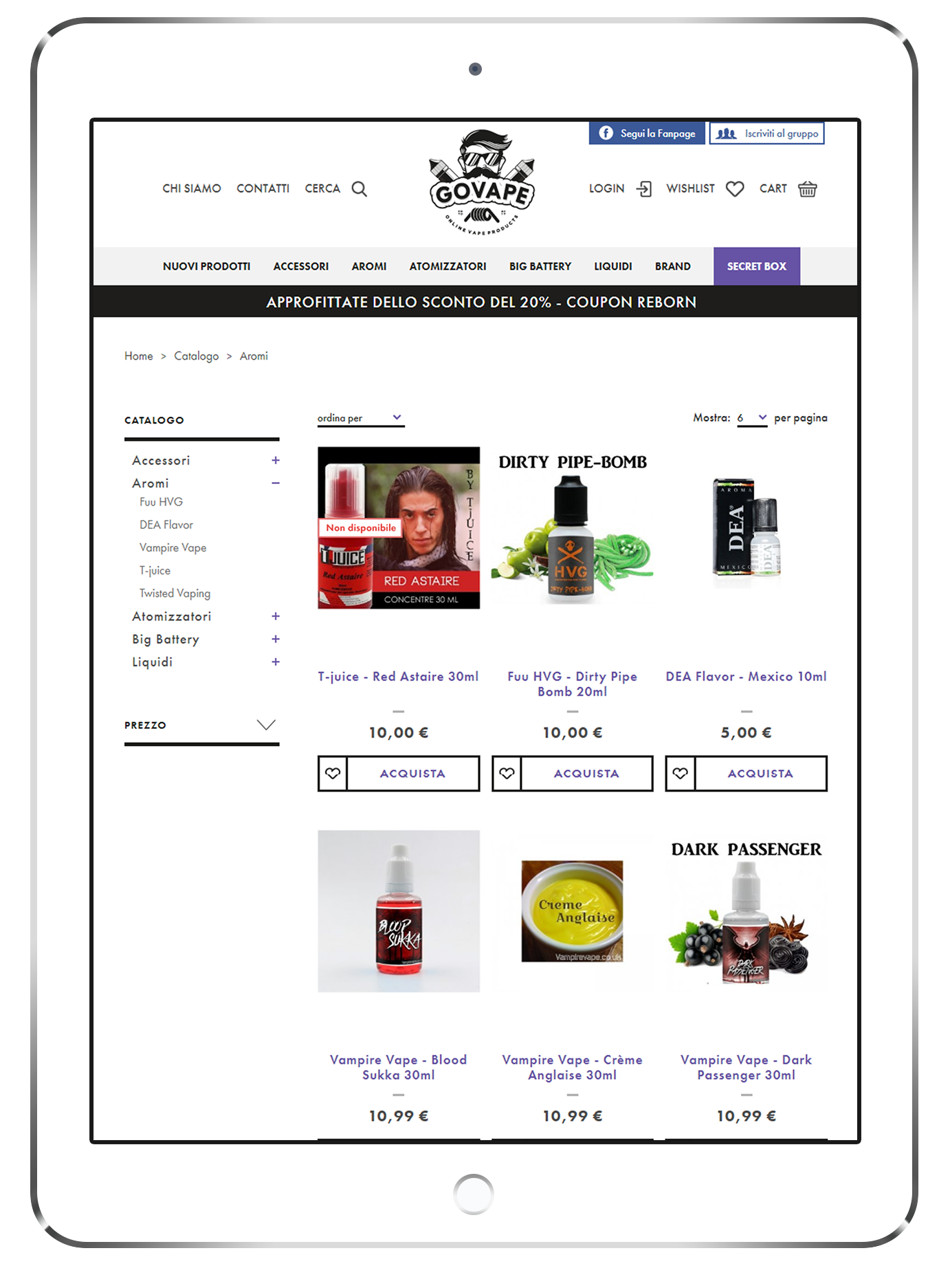 La piattaforma e-commerce govape.it si posiziona nell’universo digitale come un esempio perfetto dell’efficacia grafica di un layout che sposa l’efficienza funzionale di un sito. L’applicativo realizzato dalla 3d0 offre infatti agli utenti un’esperienza di navigazione piacevole e mirata a creare fidelizzazione, soprattutto con la compilazione di una secret box pensata ad hoc per i clienti più curiosi; ma allo stesso tempo garantisce all’amministratore una capacità di gestione del catalogo e dei listini b2b e b2c altamente performante.