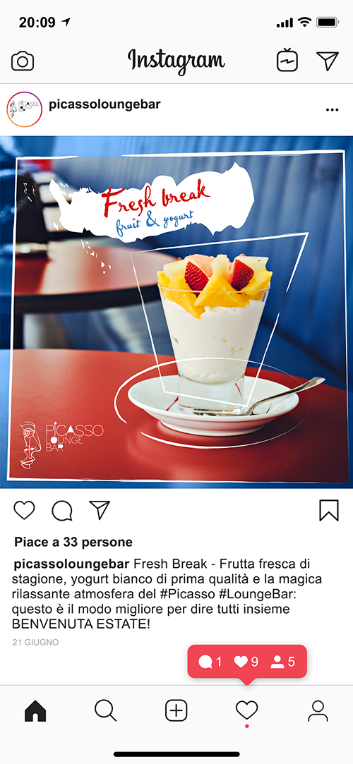 Dalla colazione al digestivo, il Lounge Bar Picasso propone un’offerta diversificata e di grande qualità, con sfizi e cocktail per ogni momento della giornata.