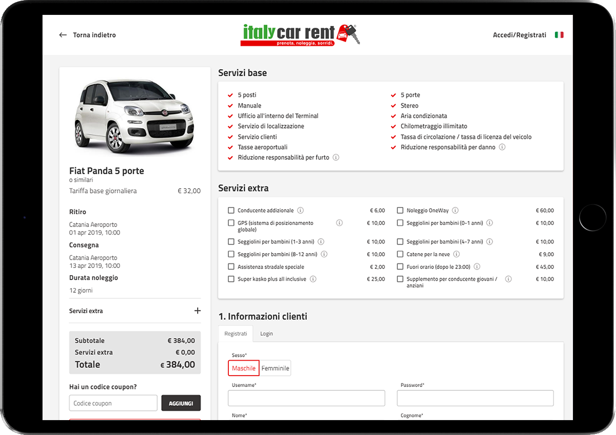 Per il portale italycarrent.com il team di sviluppatori della 3d0 ha progettato una piattaforma di booking per il noleggio a breve termine in grado di gestire le numerose richieste pervenute quotidianamente dal nuovo website, che presenta inoltre una grafica cartonata e moderna che valorizza l'esperienza di fruizione degli utenti.
