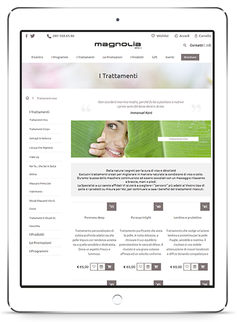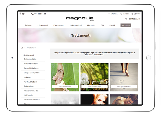Il centro benessere Magnolia Space si rinnova: nuova veste grafica e nuove funzionalità per lo shop online, che introduce anche una sezione di prodotti da associare ai trattamenti offerti in sede. Attraverso un imponente lavoro di restyling , 3d0 ricrea sul web l’esperienza di assoluto comfort vissuto dal cliente abituale del centro, riproponendo online quella cura dei dettagli e quell’attenzione ad ogni nuovo “ospite” che negli anni ha creato fidelizzazione e apprezzamento unanime.