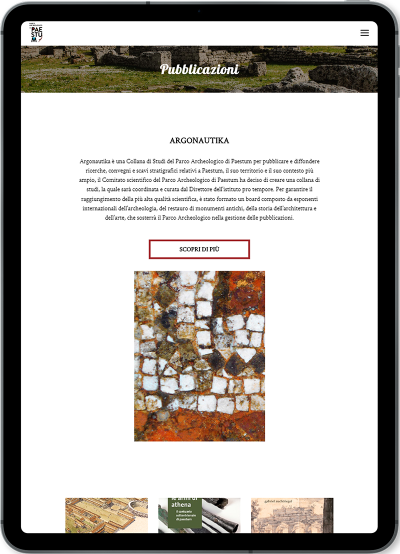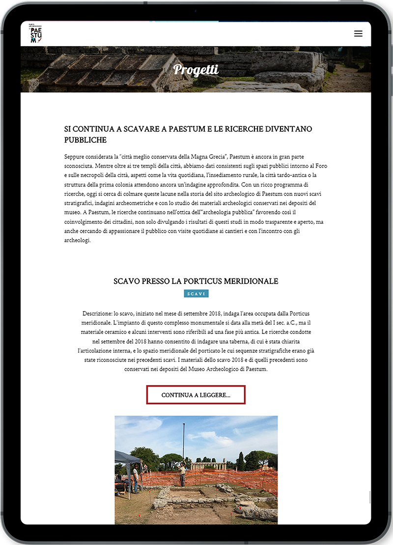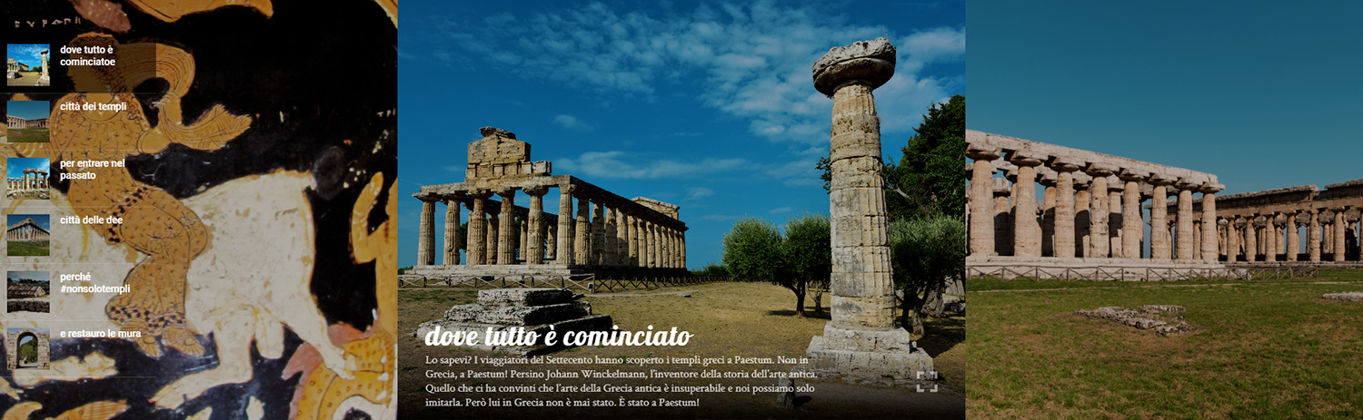 Prosegue con rinnovato entusiasmo e costante impegno la collaborazione della 3d0 con il Parco Archeologico di Paestum, in questo progetto all’avanguardia di digitalizzazione del settore museale nazionale. Avviato ormai da qualche anno, con orgoglio intercettiamo lo stimolo di rinnovamento imposto dal web e che si traduce in questo caso nella realizzazione di una nuova veste grafica per il portale: un layout dallo stile moderno, innovativo, ricco di contenuti multimediali, con una cura minuziosa degli effetti di navigazione ed un’elevata attenzione, inalterata nel tempo, alla valorizzazione delle immagini che raccontano questo tuffo digitale in un mondo affascinante, antico eppure ancora così vicino a noi.
