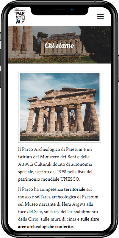Il sito web museopaestum.cultura.gov.it risponde ad un preciso obiettivo, quello di raccogliere in un portale digitale il flusso di informazioni, notizie ed iniziative che accompagnano la progettualità interdisciplinare del Museo Archeologico Nazionale di Paestum.