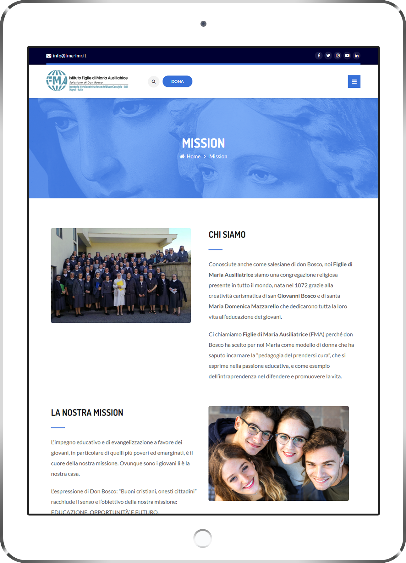Conosciute anche come Salesiane di Don Bosco, le Figlie di Maria Ausiliatrice sono una congregazione religiosa presente in tutto il mondo, nata nel 1872 grazie alla creatività carismatica di San Giovanni Bosco e di santa Maria Domenica Mazzarello che dedicarono tutta la loro vita all’educazione dei giovani.