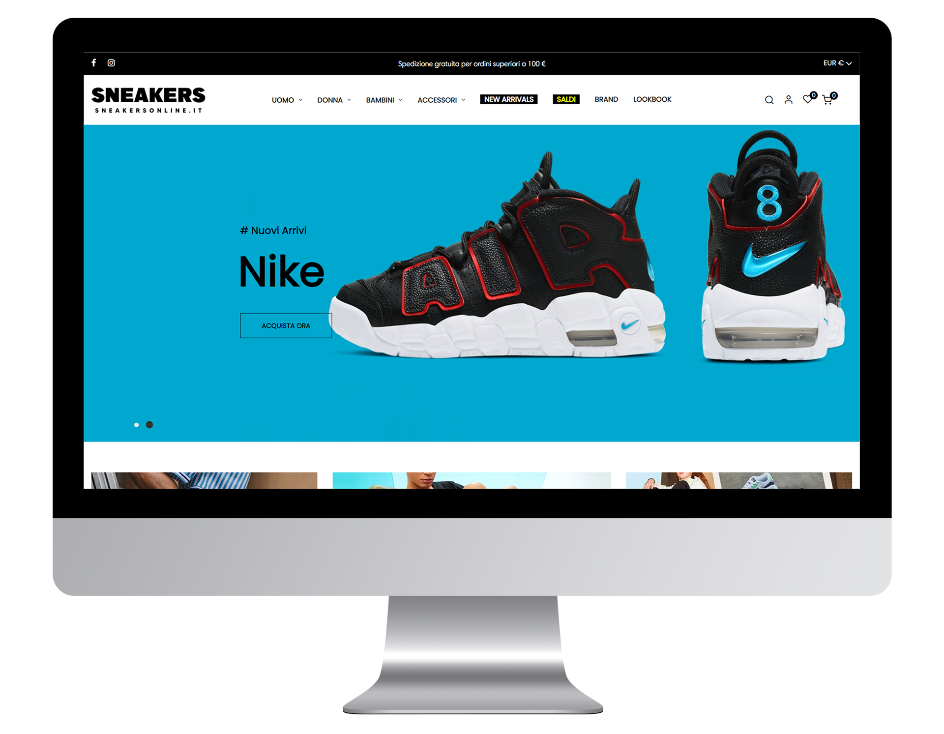 Il segreto, del successo, è nel nome, del brand! Sneakers: un prodotto specifico per un target mirato! Il nuovo e-commerce sneakersonline.it si rivolge ad un pubblico smaliziato abituato a fare shopping online, soprattutto quando si tratta di scarpe. L’obiettivo di 3d0 per questo progetto? Offrire a questa clientela un’esperienza d’acquisto comoda, sicura e, non per ultima, anche accattivante.
