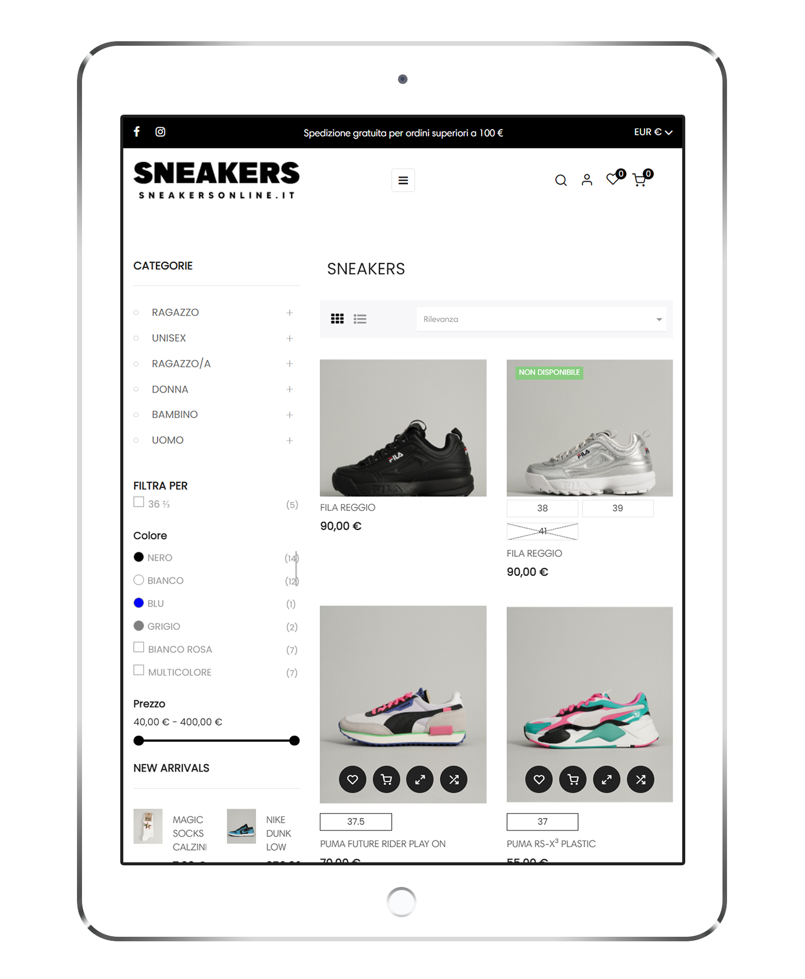 Negozio di tendenza collocato in una delle vie di Portici più frequentate dagli “shopping addicted”, Sneakers, sotto la guida lungimirante di imprenditori giovani ed intraprendenti, è pronto adesso alla sfida della vendita online, per offrire a clienti nuovi o già legati al brand un ulteriore canale di fidelizzazione.