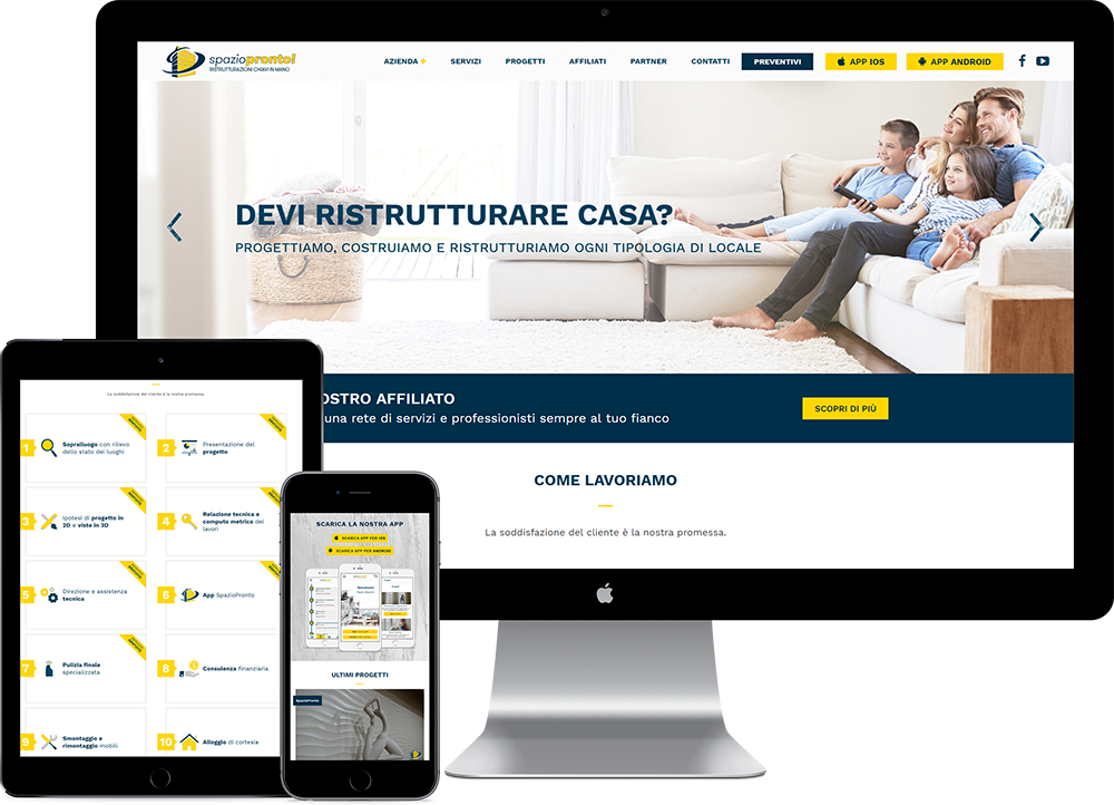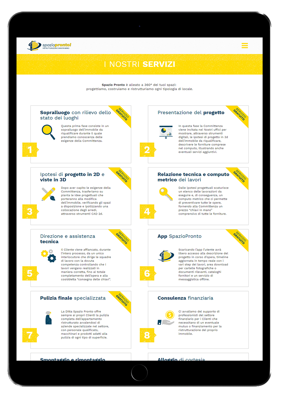 Dopo l’app arriva anche il sito di presentazione del progetto Spazio Pronto, un portale web che ne illustra i servizi attraverso una veste grafica attentamente curata dal team di design della 3d0. Il sito è rivolto non solo agli utenti finali ma anche ai potenziali futuri affiliati, interessati all’idea di entrare a far parte di un gruppo solido ed in costante espansione.