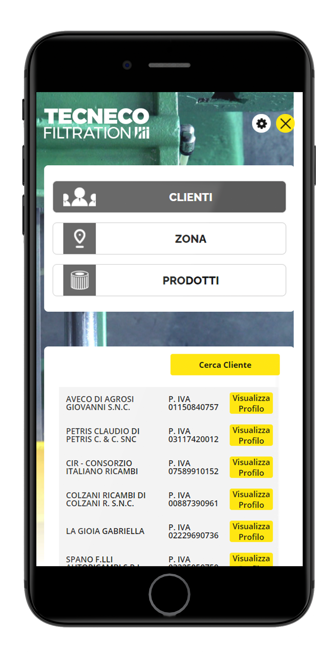 La rete commerciale Tecneco Filtration offre ai suoi agenti (operanti sull’intero territorio nazionale e all’estero) un sistema di statistiche aggiornato su risultati individuali e di zona. Il modulo, ad accesso riservato per ogni agente, si compone di tre sezioni principali: l’elenco dei clienti con anagrafica completa; le zone di competenza; il catalogo dei prodotti, suddivisi per categoria e ricercabili per codice. Alle funzioni base di consultazione analitica, si aggiungono poi procedure di comparazione e confronto in termini di fatturazione e vendite.