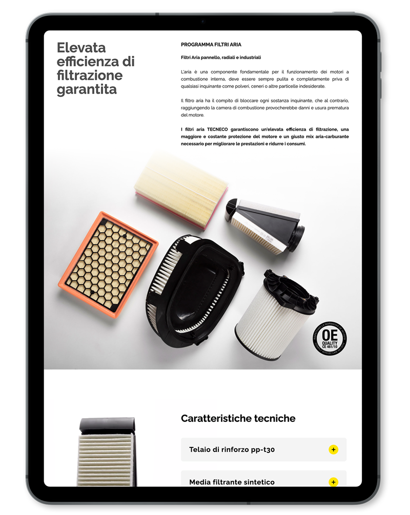 Il settore automotive è soggetto ad aggiornamenti costanti che impongono una comunicazione snella e a misura dell’utente. Solo nell’ultimo anno infatti la Tecneco Filtration ha deciso di rinnovare il design di tutti i suoi asset online, puntando ancora una volta sulla consulenza strategica della 3d0 allo scopo di rendere sempre più performante l’esperienza di navigazione dei suoi clienti. Non solo una nuova veste grafica quindi, ma anche la release dell’ultima versione del nostro CMS proprietario, Marion, una piattaforma all’avanguardia, sempre più potente, più funzionale e più user friendly, sia per l’amministratore (lato back-end) che per l’utente finale (lato front-end).